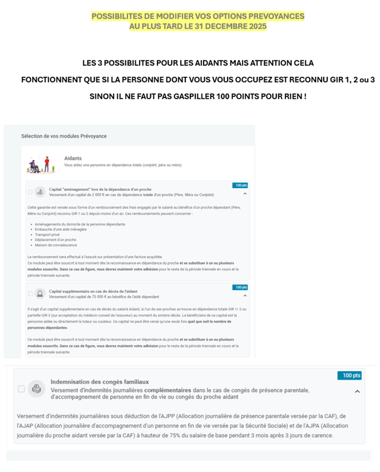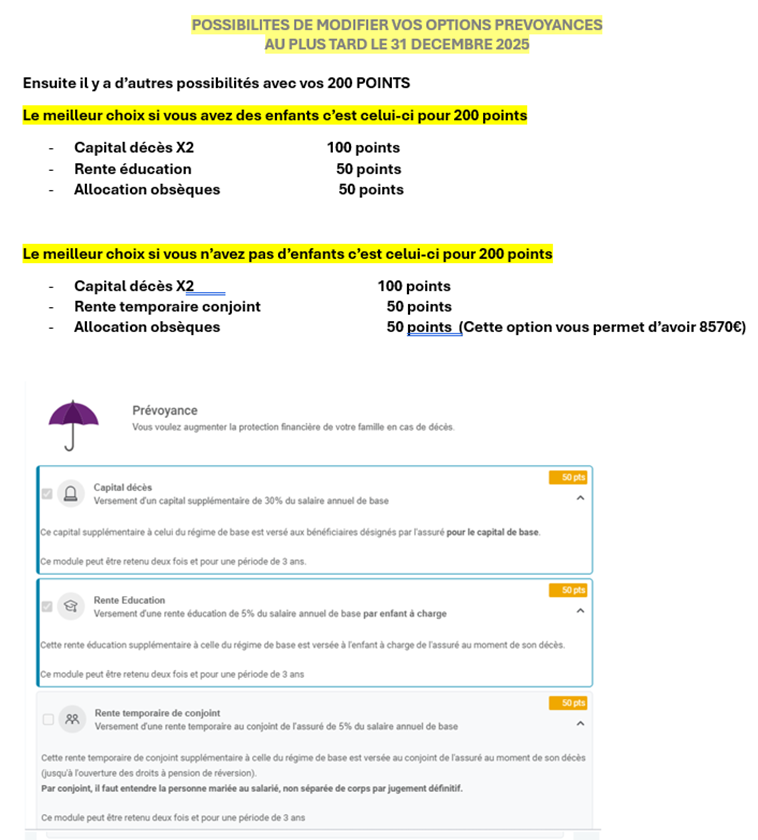 Attention ! vous avez la possibilité de faire le bon choix dans ces options et de ne pas gaspiller vos points pour rien mais au plus tard le 31/12/2025.