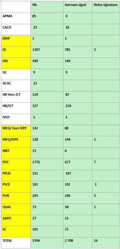 Réponse de la direction : Non car il faudrait modifier l'accord, et il ne s'agit là que de mise en place d'avenants.