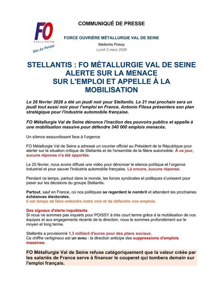 Ce livre blanc aurait pu s'intituler « L'électrique, chance ou menace ? ». Mais ce serait passer à côté de la réalité. L'industrie automobile française fait face à des défis autrement plus graves et structurels que la simple transition énergétique. Depuis 2010, notre filière a perdu plus de 100 000 emplois. Cette hémorragie ne s'explique pas par l'électrification, elle a commencé bien avant. Elle s'explique par deux phénomènes massifs que FO dénonce depuis des années : la concurrence intra-européenne qui marginalise progressivement les sites français au profit d'autres pays européens, et désormais la déferlante chinoise qui menace l'ensemble de notre industrie. En 2019, la production française représentait 10,2% de la production européenne. En 2024, elle n'en pesait plus que 7,9%. Dans le même temps, la Chine a multiplié par quatre sa part de marché en Europe. En 2025, plus de 70% de nos exportations automobiles sont dirigées vers des marchés où elles…