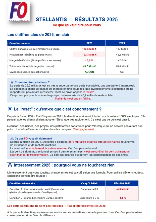 Communication Résultats Stellantis et décision unilatérale de la Direction