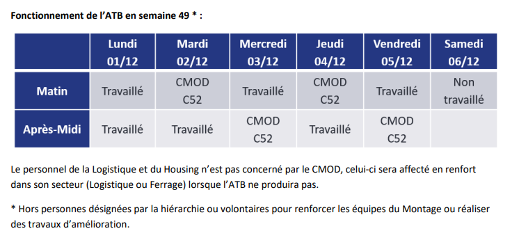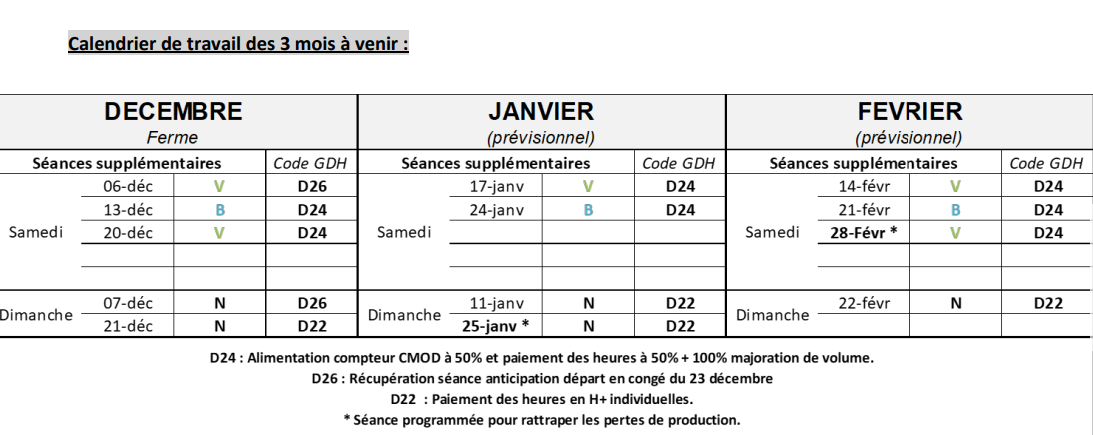 Les élus FO ont également émis un avis défavorable sur le calendrier de travail de décembre, janvier et février.