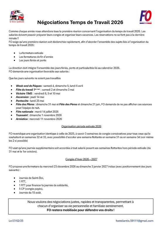Distribution Tract et Calendrier FO Hordain du 11/12/25