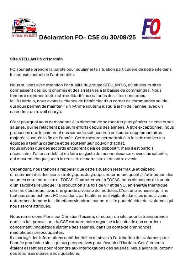 Compte-rendu CSE 30/09/25 & Déclaration FO
