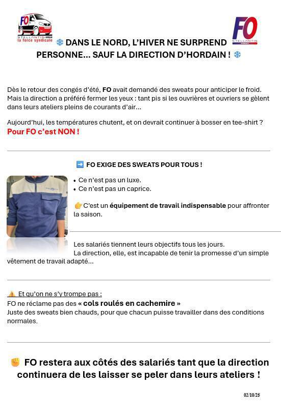 😤FO relance la direction sur la dotation des Sweats 😤