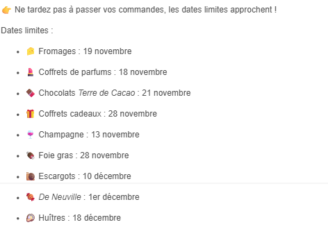 Ne tardez pas à passer vos commandes, les dates limites approchent !