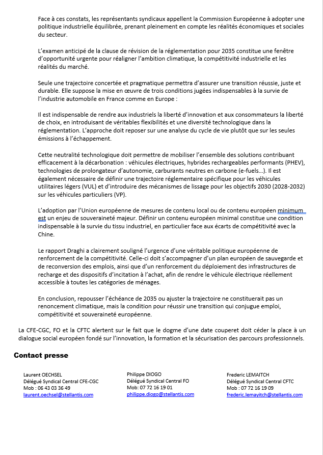 C’est dans ce cadre, que nous avons signé le 26 novembre dernier la déclaration commune du CSF automobile et que nous avons rédigé un communiqué de presse commun avec la CFE-CGC et la CFTC.