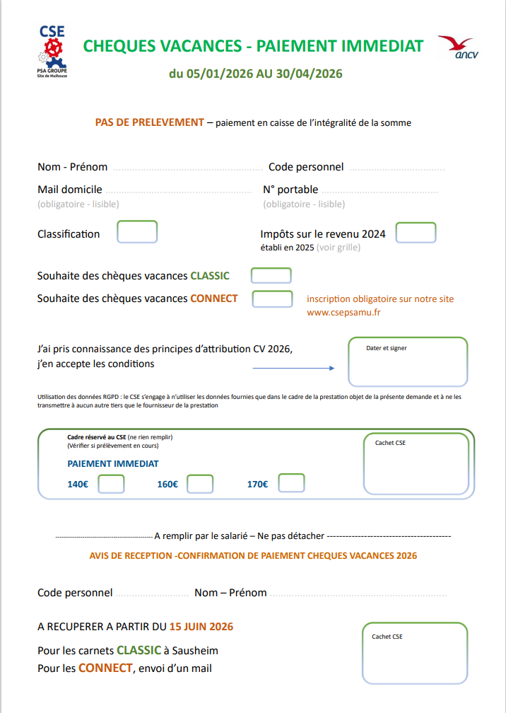 MU: FORMULAIRE CHEQUES VACANCES PAIEMENT UNIQUE