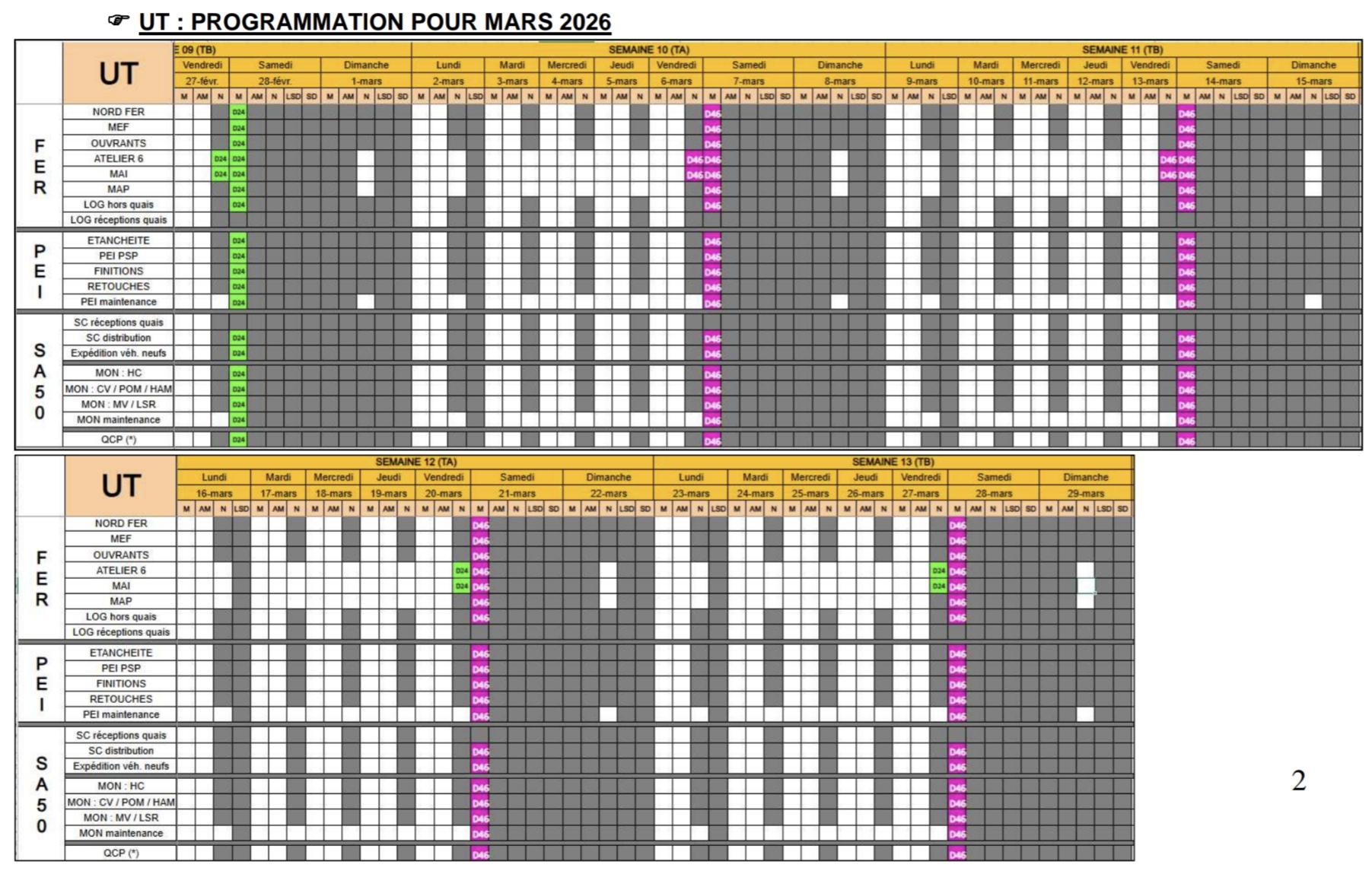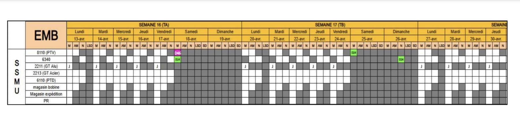 MU: TABLEAU DES ENGAGEMENTS DES USINES