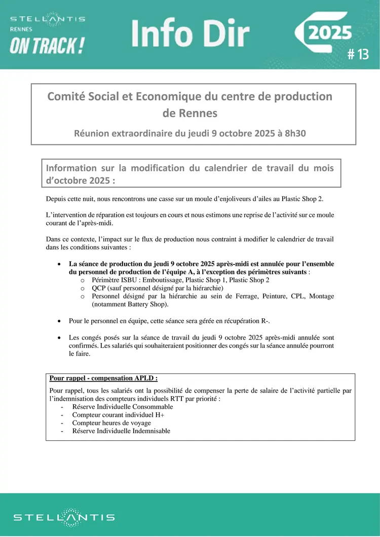 Flash inFO :afin de sécuriser les encours notamment Plastic Shop 2, annulation de la séance de mardi 11/11 après-midi pour l'équipe B pour les équipes de production, à l'exception des périmètres suivants qui travailleront :