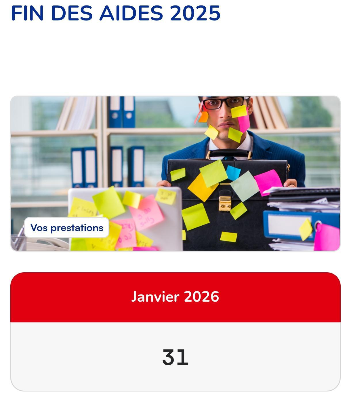 Vos aides 2025 seront terminées le 31 janvier 2026 en ligne (vendredi 30 janvier au M03).