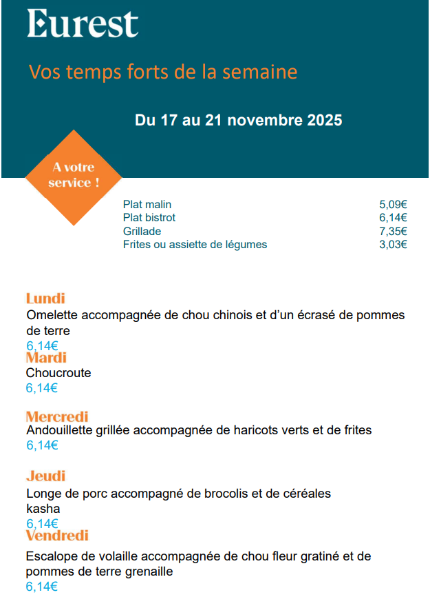 Menu du self pour la semaine du 17 au 21 Novembre 2025