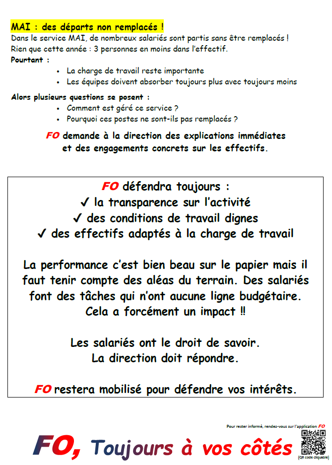 MAI : des départs non remplacés !