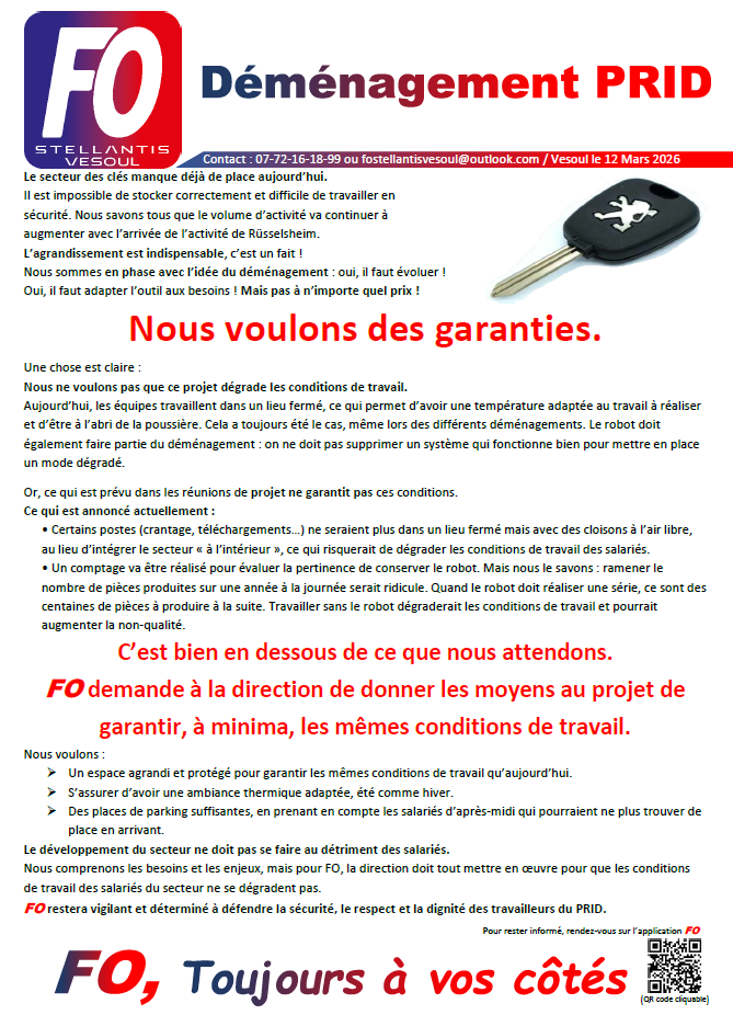 FO demande à la direction de donner les moyens au projet de garantir, à minima, les mêmes conditions de travail.