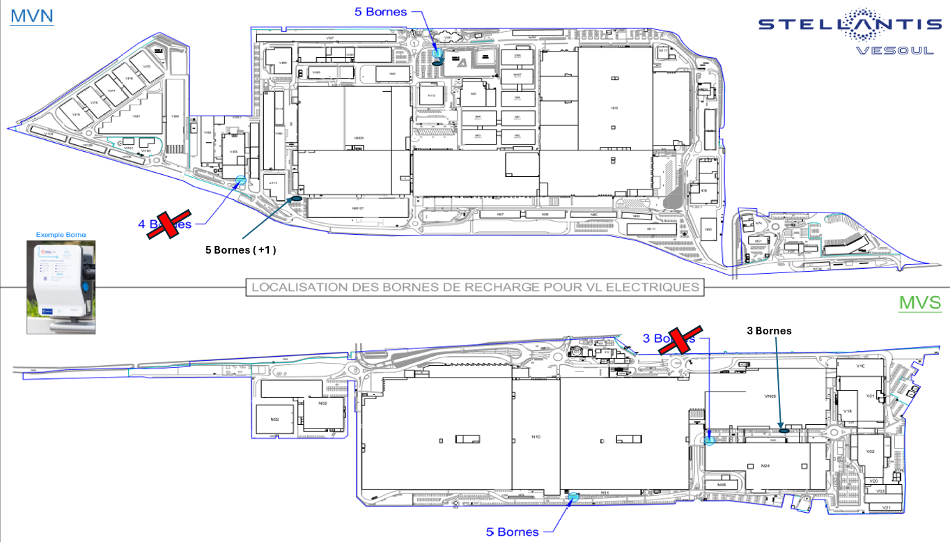 18 bornes de recharges pour véhicules électriques personnels vont être positionnées sur le site (voir plan ci-dessous).