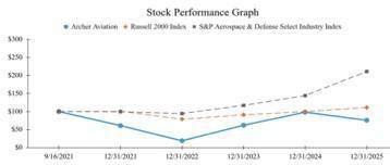 Le graphique ci-dessous montre l'affaiblissement en 2025 du rendement de l'action ARCHER pour 100 USD placés le 16 sept 2021.
