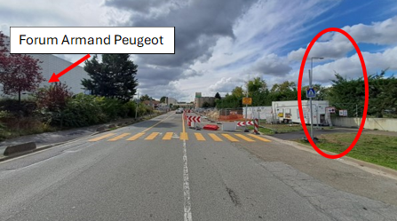 A la demande de FO, un spot va être installé au départ du passage piéton face au forum Armand Peugeot en face du parking pointe ouest. (Accès piétons du site via le parking pointe ouest)