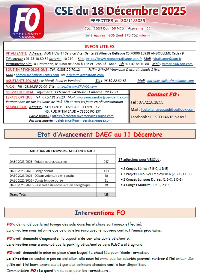 La direction a convoqué le CSE ce matin à 8h30 et a annoncé pour la partie magasin et PRID, un aménagement de pont sur le 10 Novembre.