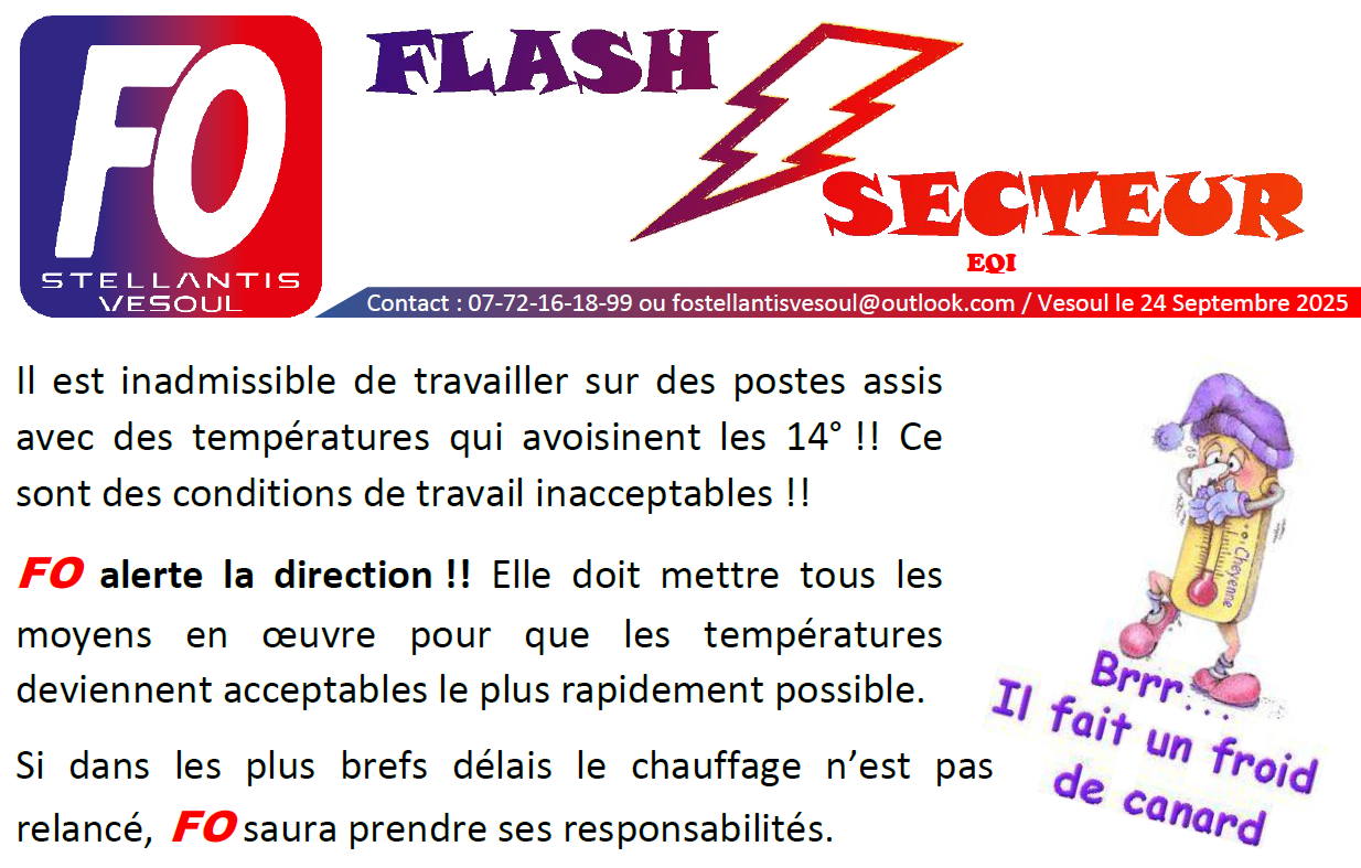 Si dans les plus brefs délais le chauffage n’est pas relancé, FO saura prendre ses responsabilités.