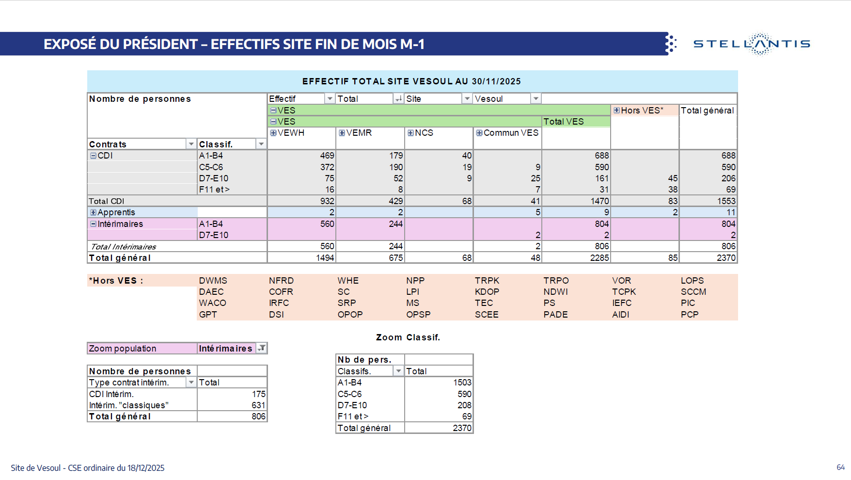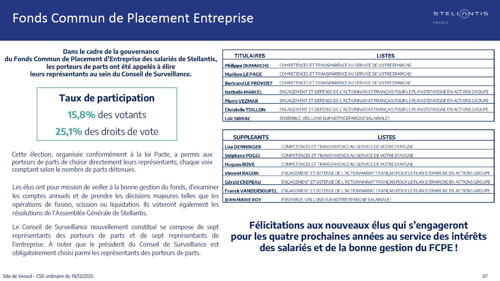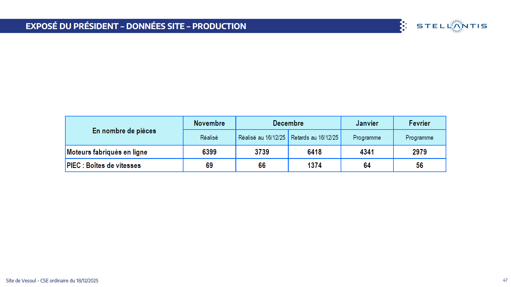 Quelques données et infos suite au CSE du 18 Décembre