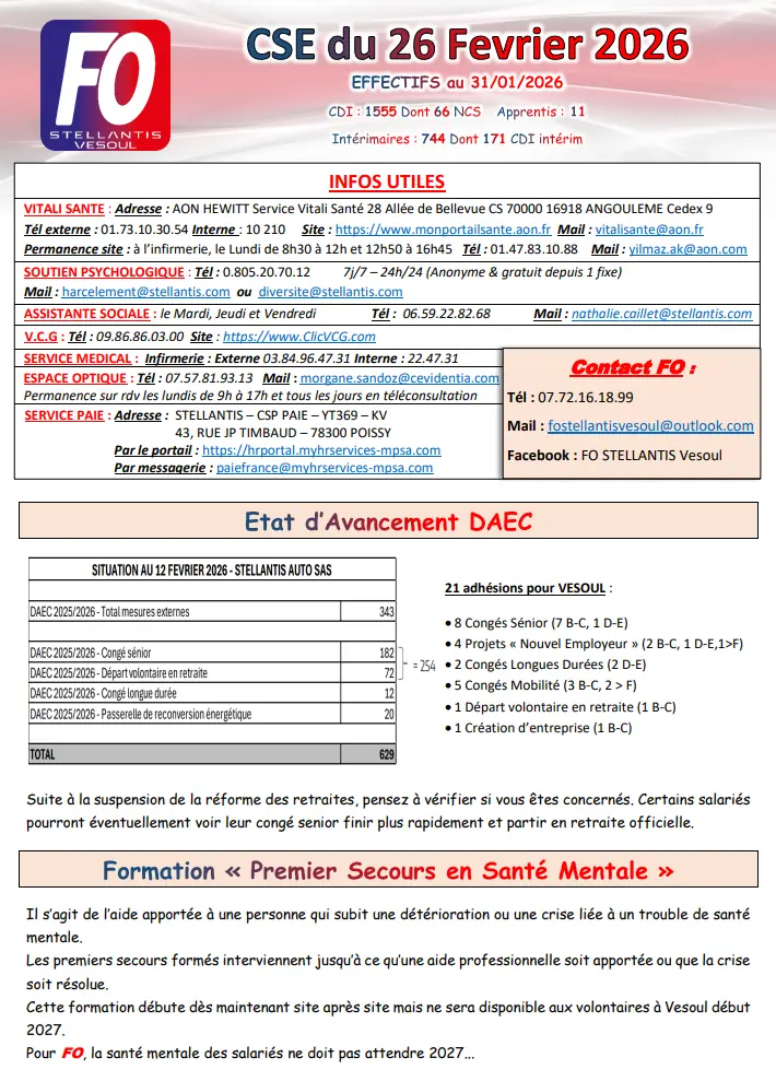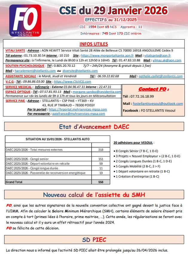 Compte rendu CSE du 29 Janvier 2026